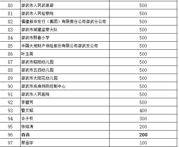 邵武市福利院2019年上半年捐款和捐物清册