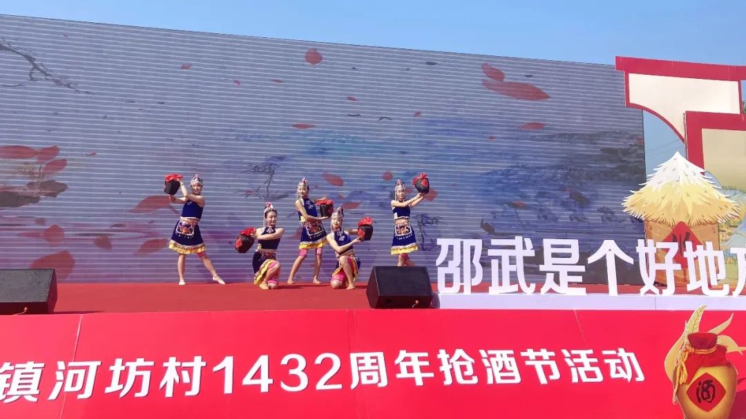 当天的洪墩镇河坊村人声鼎沸,热闹非凡。在活动现场,舞蹈《舞狮抢酒》《抢酒舞》,歌曲《邵武是个好地方》及《川剧变脸》等一个个独具民俗特色的文艺节目闪亮登场,拉开了抢酒节活动的序幕;接着,开坛、注酒、抢酒、封坛民俗项目,将抢酒节活动引向深入。“抢酒”活动开始后,当地村民们争相把自酿的红米酒运来,倒入特制的两个大木桶中,争相舀酒,将抢到的米酒泼洒向天、地、群众,抢酒节活动被推向高潮,瞬间酒香在村子里弥漫,欢快洋溢在每个观众的脸上、陶醉在心里。