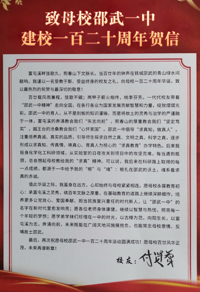 邵武一中建校百余年来,积累了丰富的办学经验,形成了优良的校风、学风和办学特色,在教育教学和人才培养方面取得丰硕的成果,为国家各高等院校输送了大批优秀人才,涌现出一批杰出的政治家、科学家、教育家、经济学家。值此建校120周年之际,精英学子分享成长路上的故事,为后辈学子点亮前行之光。 付贤智:光催化领域的先导者 付贤智,1957年7月出生于福建邵武市。1969年至1974年在邵武一中完成初中和高中学业。1978年9月,付贤智以物理98分、化学100分的优异成绩,被北京大学化学系录取,在北京大学先后获得学士、硕士、博士学位,并留在北京大学从事博士后研究工作。1993年5月,他应美国威斯康星—麦迪逊大学邀请赴美从事博士后研究工作,开启了光催化创新研究之路。 1997年,北京大学和福州大学同时邀请他回国执教。他谢绝了美国威斯康星——麦迪逊大学的挽留,放弃了回到母校北京大学从教的机会,以“闽江学者特聘教授”的身份来到福州大学工作。 回国后,付贤智创办了我国第一个光催化研究所,在他的带领下,光催化研究所快速发展成为了目前我国乃至是全世界光催化领域最大的科研团队之一,拥有核生化灾害防护化学全国重点实验室、能源与环境光催化国家重点实验室、国家环境光催化工程技术研究中心等3个国家级科研平台。他和研究团队将光催化技术运用到空气净化、废水治理、建筑材料、电力输运等领域中,研发的多项技术和产品达到国际领先水平,先后荣获2项国家科技奖。 2009年,付贤智当选中国工程院院士,成为我国光催化领域的首位院士。2010年,付贤智担任福州大学校长后,他以坚定的信仰、渊博的学识和和勇于创新的开拓精神,影响了一批又一批的“福大人”。从昔日的闽北山村青年、北大本硕博学子、美国知名大学博士后,到中国工程院院士、福州大学校长,每个角色都留下了他脚踏实地、努力拼搏的印记。 付贤智始终牵挂家乡的发展,默默支持家乡的建设,促成了邵武市人民政府与福州大学签署战略合作协议和飞地科技园、邵武氟新材料研究院等共建协议,并多次邀请院士专家赴邵武金塘工业园区指导氟新材料产业发展,推动多项院士专家技术在邵武落地转化。他在曾经工作过的大竹中学设立奖教学金,并推动成立国家环境光催化工程技术研究中心邵武分中心、福州大学科技特派员服务团邵武工作站等。福州大学以科技力量、学术优势推动邵武产业升级、平台创新,双方共同发力,谱写校地合作共赢新篇章。 作者:王晓云 雷雨晨 编辑:谭一璇 审核:缪顺春 李婷 终审:陈一沿 |