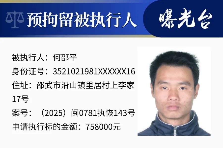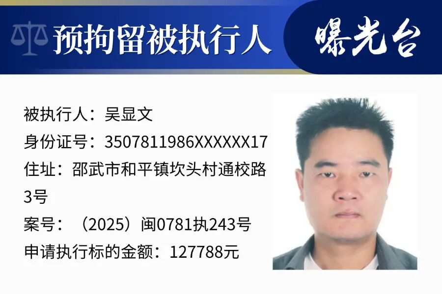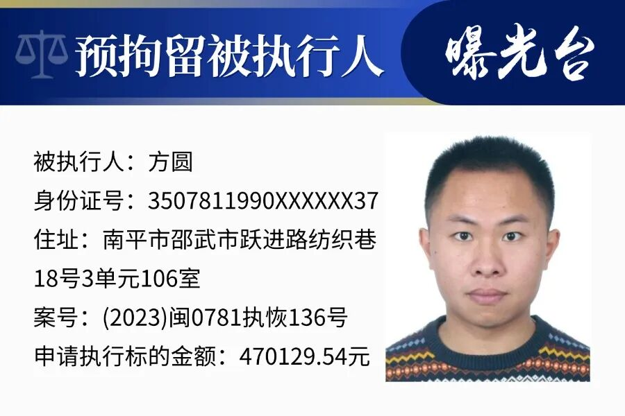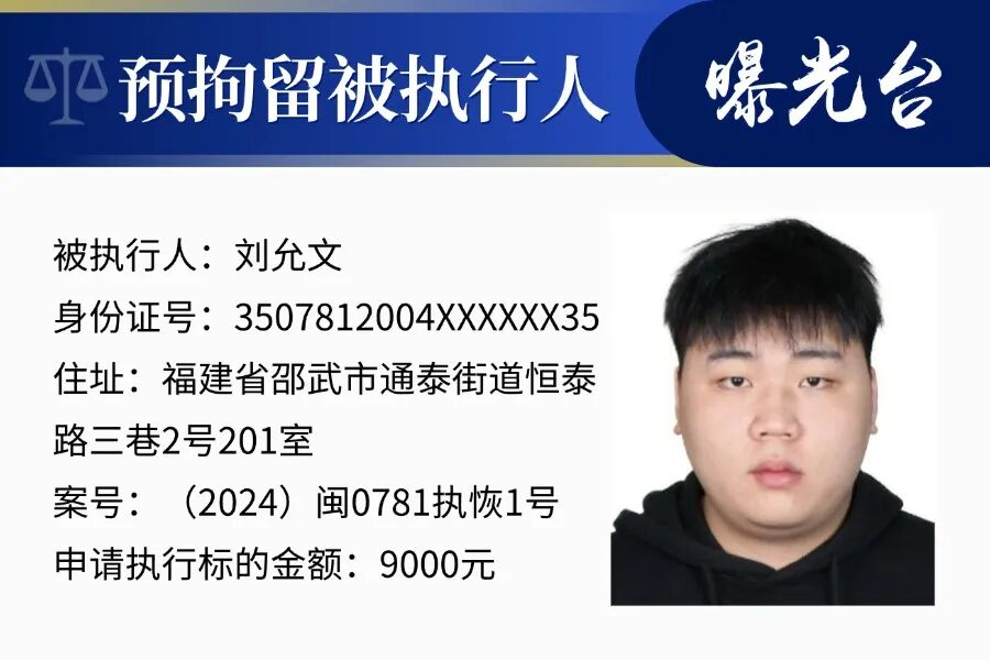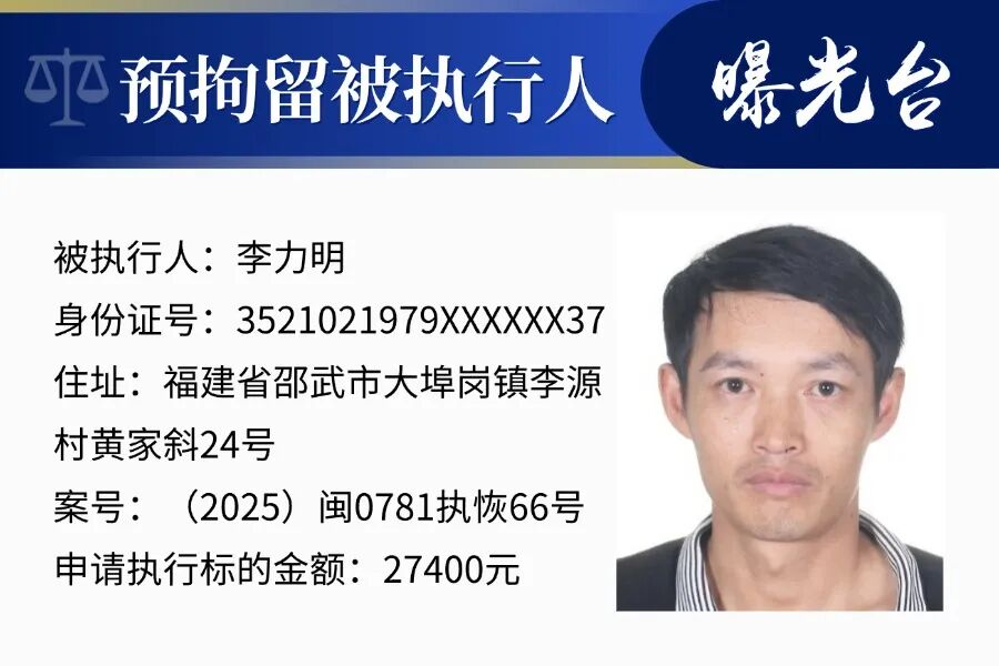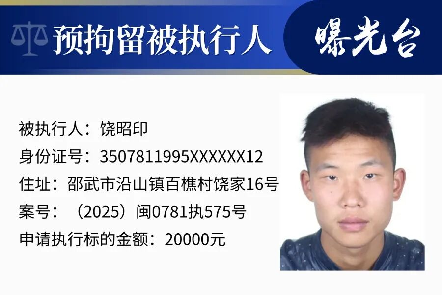 为切实保障胜诉当事人合法权益,维护司法权威,依照《中华人民共和国民事诉讼法》《最高人民法院关于民事执行中财产调查若干问题的规定》等有关规定,本院拟对有规避执行、拒不申报财产等行为的9名失信被执行人予以司法拘留。现根据《最高人民法院关于在执行中进一步强化善意文明执行理念的意见》,本院正告预拘留失信被执行人尽快履行生效法律文书所确定的义务,否则本院将采取司法拘留措施;构成犯罪的,将以拒不执行判决、裁定罪追究刑事责任。 特此公告。 联系电话: 0599-6338523 0599-6322127 邵武市人民法院 2025年9月19日 本期预拘留名单如下: |