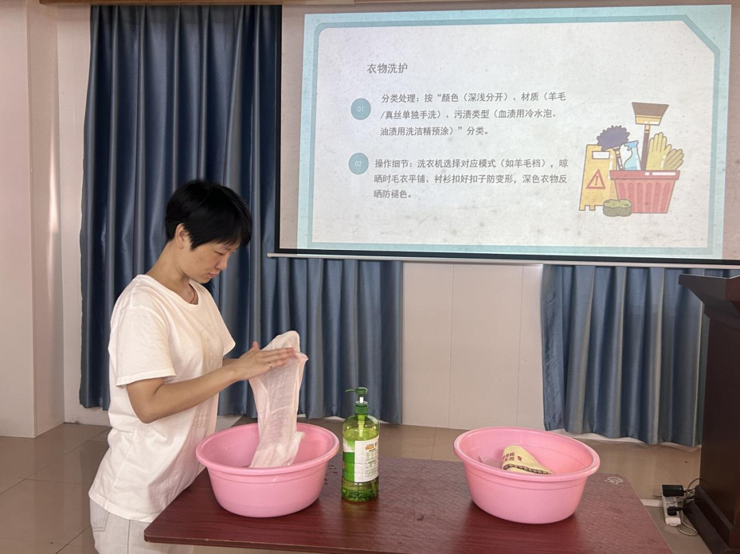 本网讯 为破解家政服务员技术不精这一痛点问题,近日,城郊镇邀请海豚社工中心傅红珍老师在祥云社区开设“零门槛、重实用”的家政服务技术培训班,把实用课程送到“家门口”,让零工群体“学技能、好就业、能增收”。 本次培训聚焦家政服务市场核心需求,构建“基础+专项”双轨教学模式。一方面,通过日常保洁、分类洗护等基础技能以及老年基础护理、儿童安全照护等专业知识的现场讲解与演示,精准输送能直接应用于工作场景的“硬技能”,同时围绕服务工作难点,专项展示油渍、果汁等顽固污渍处理技巧、窗户玻璃无水印清理等特殊专项方法,切实做到学有所用、学而能用,助力乡镇零工实现从“体力型”向“技能型”转型。 另一方面,采取现场“沉浸式场景体验”模式,学员们纷纷拿起准备好的实训衣物、模拟家电等进行“亲身体验”。在细节处理上出现偏差,教师团队便及时上前纠正动作、讲解要点,直至每位学员都能完整、规范地完成一套服务流程。 此次家政技能培训是针对零工群体需求的一次精准尝试。下一步,城郊镇将继续调研辖区零工群体的就业偏好与市场需求,拓展培训品类,推出更多贴合实际的技能课程,让更多零工通过技能提升闯出就业“新路子”。 作者:刘丹萍 何一鑫 编辑:谭一璇 蔡哲培 审核:缪顺春 李婷 终审:陈一沿 |
