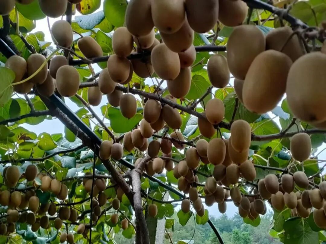 基地种植的猕猴桃品种丰富,包括东红、金艳、徐香、翠香、魅丽金果、阳光金果等七大优质品种。这些品种各具特色:魅丽和阳光金果又称黄芯猕猴桃,营养价值丰富,口感绝佳,是基地的明星产品;金艳果实硕大,单果重量普遍超过120克;徐香香气浓郁,酸甜适中;翠香则以其翠绿的果肉和清甜的口感备受青睐。得益于科学的水肥管理和精心的栽培措施,今年产出的猕猴桃不仅外形美观,内在品质也尤为出色,糖度稳定在16-18度之间,汁水充沛,风味浓郁。