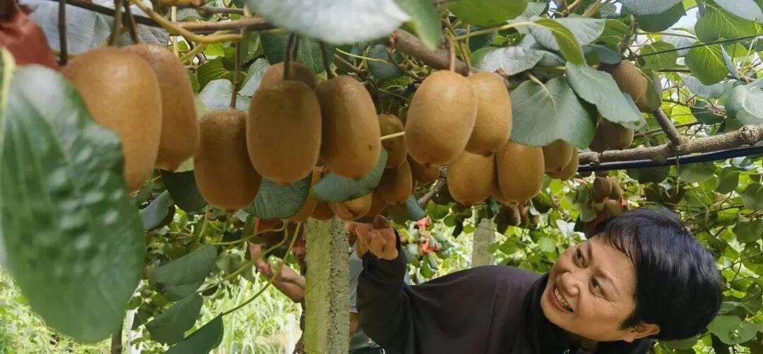 本网讯 金秋时节,晒口街道高峰村的山乘山猕猴桃种植基地呈现出一派热闹的丰收景象。连绵的山坡上,猕猴桃藤蔓郁郁葱葱,饱满的果实挂满枝头,在秋日阳光下散发着诱人的光泽。今年该基地迎来丰产年,预计总产量将稳定在6.5万斤以上,优质果品率显著提升。