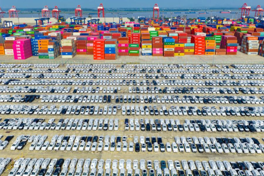 2025年10月4日在江苏省港口集团南京港龙潭港区拍摄的准备装船出口的汽车(无人机照片)。新华社发(杨素平摄) 今年以来,宏观政策持续发力、适时加力,打好政策“组合拳”;大力提振消费、提高投资效益,全方位扩大国内需求;纵深推进全国统一大市场建设,综合整治“内卷式”竞争……中国经济上半年同比增长5.3%,延续了稳中向好态势。 回望“十四五”,面对一次次重大挑战,中国顶住了压力、经受住了考验,中国式现代化向前迈出了一大步。
