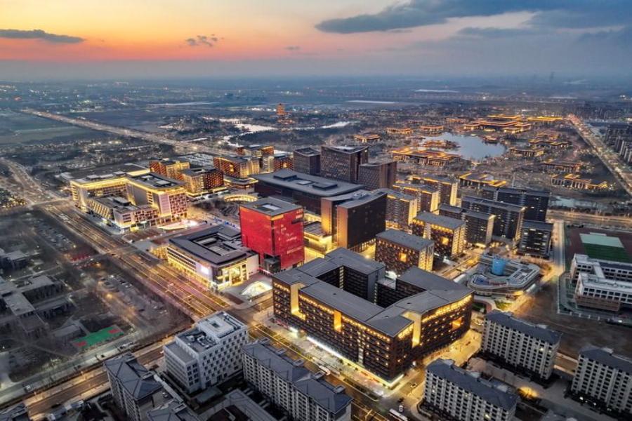 2023年8月11日,游客在浙江安吉余村参观(无人机照片)。新华社记者 翁忻旸 摄 深刻践行绿水青山就是金山银山理念,推动经济社会发展绿色转型; 以文化赋能经济社会发展,人文和经济交相辉映、价值共生; 统筹发展和安全,粮食、能源、产业、国防等安全基础进一步夯实; 促进全体人民共同富裕,从理论完善到示范探路,正在将梦想逐步变为现实…… 习近平新时代中国特色社会主义思想在亿万人民波澜壮阔的实践中不断丰富发展,激扬起奋进新征程最深沉、最磅礴的力量。 这是以宏伟蓝图引领高质量发展的五年。 今年10月9日,中国华能总部、中国中化总部正式迁驻雄安新区。 2023年5月,习近平总书记第三次赴河北雄安新区考察,就“已进入大规模建设与承接北京非首都功能疏解并重阶段”的新城,谆谆嘱托:“既不能心浮气躁,也不能等靠要,要踏实努力,久久为功。” 从“一片地”到“一张图”再到“一座城”,承载千年大计的未来之城阔步向前。