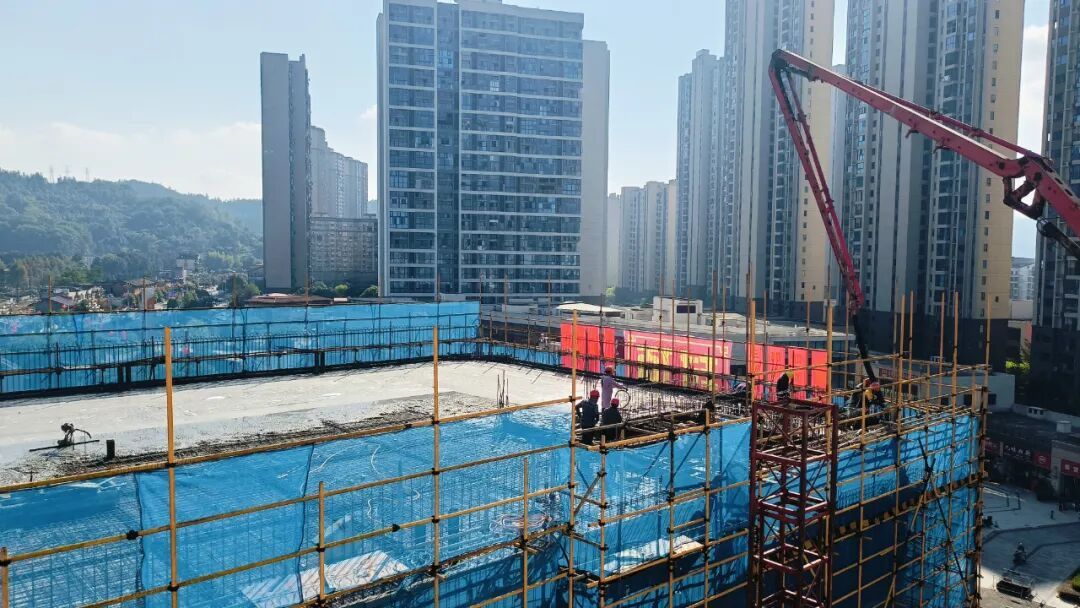 上午九时,随着最后一方混凝土通过泵车完成浇筑作业,项目正式迎来主体结构封顶的重要时刻。