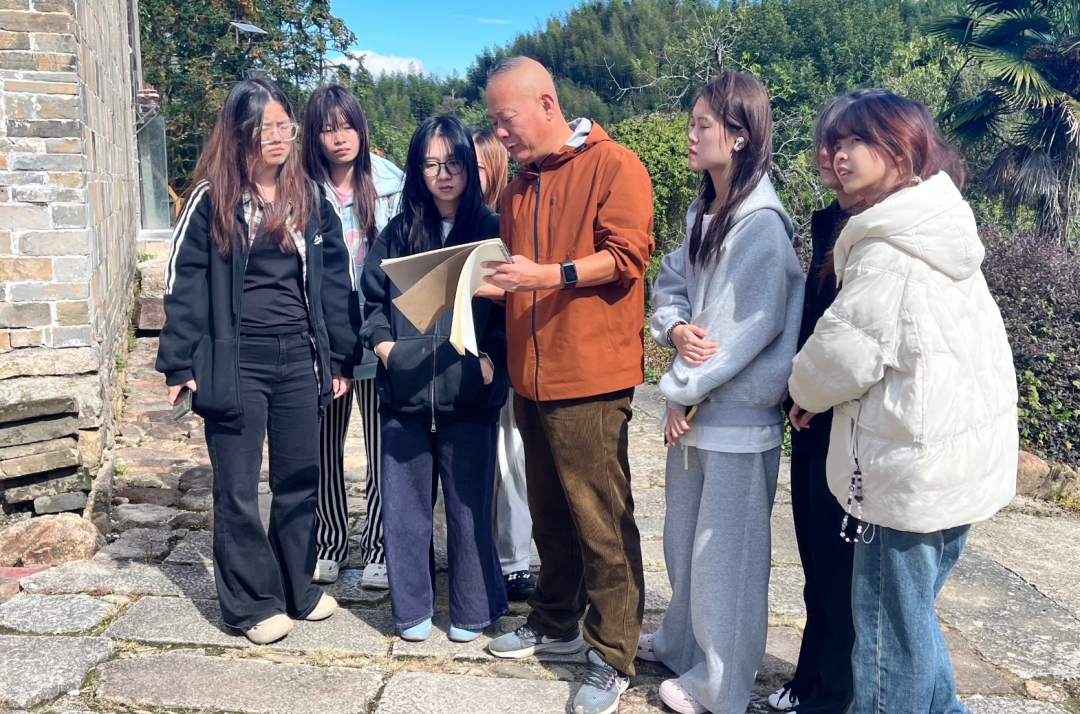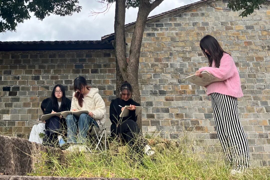 期间,师生们分为调研与写生两组开展活动。调研组在符英凡博士带领下,深入横坑村、扬名坊村、余山村等三座中国传统村落,走访黄氏家庙、吴氏家庙、中央红军秋苗第十九兵站旧址等11处古厝,围绕“一厝一故事”主题,系统开展影像拍摄与人文资料收集,为后续古建筑影像设计、导览小程序开发等古建筑活化利用项目积累素材。 写生组在李亮副院长带领下,走进桂林新村,聚焦老街民居、惠林屋桥、桂林瀑布等人文与自然景观,挥洒笔墨与油彩,共创写生作品50余幅,用画笔生动绘就乡村时代风貌。