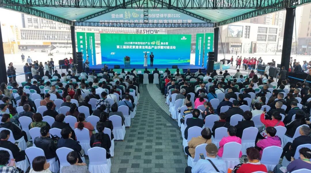 本网讯 11月7日,“绿色创造•链上未来”2025南平新型轻纺产业“四链”融合暨第三届邵武家居清洁用品产业供需对接活动在黄峭广场盛大启幕。本次活动由福建省纺织服装行业协会、邵武市工业信息化和商务局、邵武市家居清洁用品行业协会等单位联合举办。以“四链融合”为核心,共同搭建政企交流、校企合作、产销对接的重要桥梁。 来自省内外以及邵武本地的200余名企业代表齐聚活动现场。福建省纺织服装行业协会副会长兼秘书长林磊、福建省品牌建设促进会副理事长兼秘书长刘文镇、东华大学纺织学院纺织系主任高晶、南平市工业和信息化局副局长林海容,邵武市人大常委会主任、新型轻纺产业链链长夏礼平,邵武市人大常委会副主任、洗洁巾行业发展工作专班组长黄细华,邵武市人民政府副市长翁淑燕、邵武市政协副主席黄光莲、邵武市农商银行行长梅兴金、邵武市家居清洁用品协会会长林玉令等领导专家应邀出席活动。