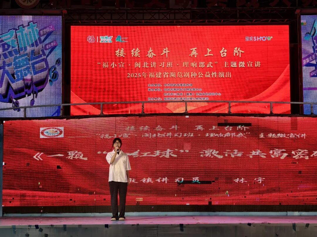 本网讯 为深入学习宣传贯彻党的二十届四中全会精神,11月10日晚,邵武市燕林大舞台热闹非凡,“接续奋斗 再上台阶”——“福小宣·闽北讲习班·理响邵武”主题微宣讲活动精彩上演。活动由市委宣传部主办,以“文艺演出+故事分享+非遗展示+互动交流”的多维融合模式,让理论宣讲更接地气、更具活力。
