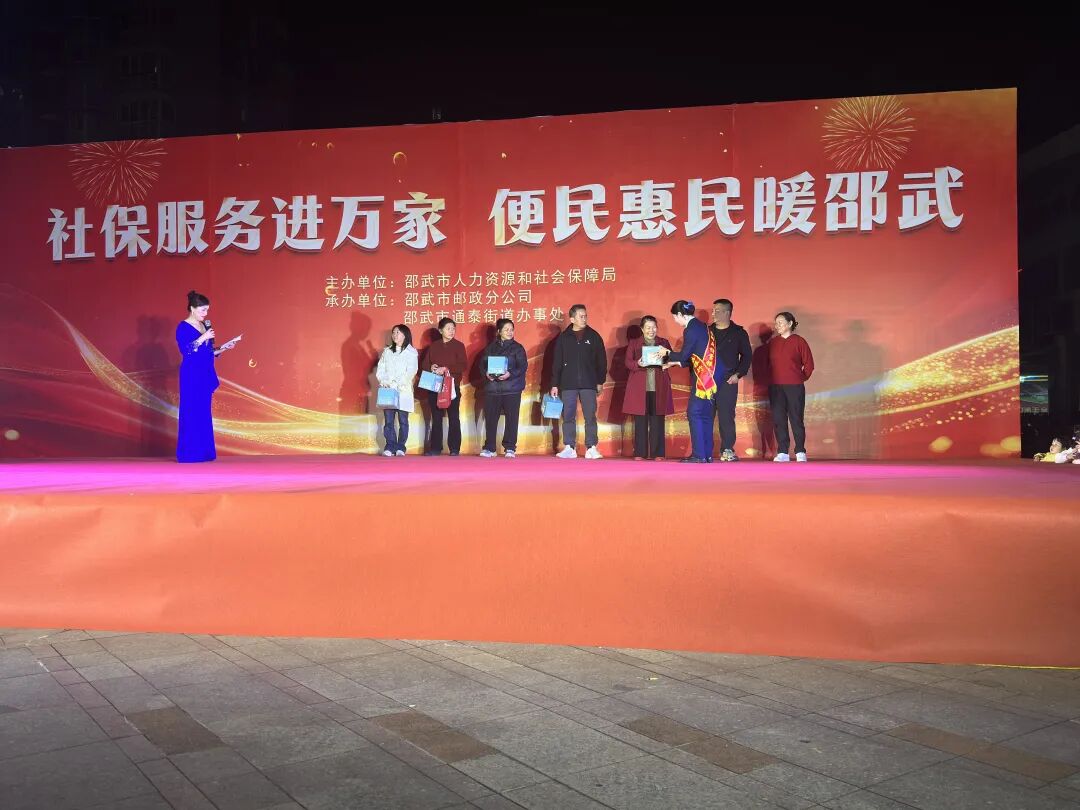 本网讯 11月16日晚,通泰街道严羽社区广场灯火璀璨、热闹非凡,邵武市人社局联合邵武市邮政分公司、通泰街道办事处共同举办“社保服务进万家 便民惠民暖邵武”主题晚会,将文艺盛宴与便民服务一同送到群众“家门口”,让社保政策在欢声笑语中深入人心。 活动现场精心筹备了9个精彩文艺节目,歌舞、曲艺等表演轮番上演,特别是以社保政策变化为核心创作的快板、社保情景剧节目,赢得台下观众阵阵掌声。穿插其中的现场抽奖与社保知识问答环节,以互动形式点燃群众参与热情,将养老保险、第三代社保卡使用等核心知识点融入问答中,让大家在趣味互动中轻松掌握政策要点。现场座无虚席,气氛热烈,吸引了500余名群众前来观看。同时,舞台旁社保服务、邮储金融服务、街道便民服务三大咨询区同步开放,专业工作人员面对面为群众解答养老保险待遇申领、新一代社保卡功能应用、邮储金融便民举措、社区便民服务等热点问题,手把手指导老年群众完成资格认证,现场发放政策宣传手册宣传品800余份,累计服务群众300余人次。