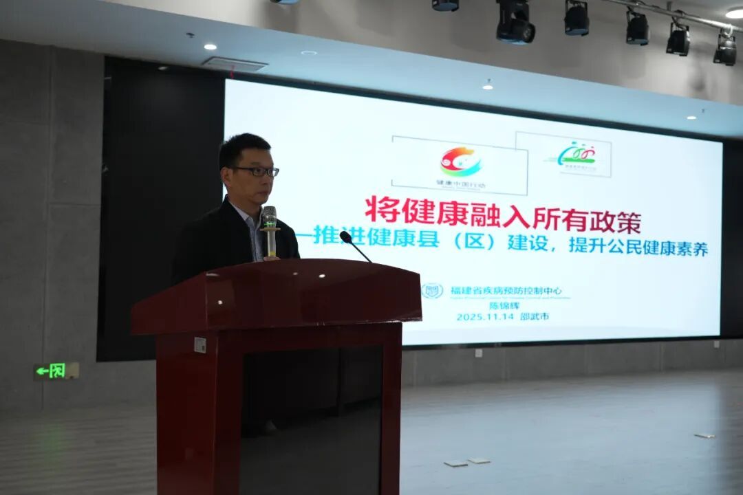 会上,邵武市卫健局主要负责同志作动员讲话,从战略高度阐述创建工作的重要意义,号召各单位凝聚合力、真抓实干,以昂扬姿态投身创建工作。随后,来自省疾控中心的2位专家围绕“将健康融入所有政策”核心理念,结合健康机关、健康场所、健康学校建设标准及实操技术,通过典型案例剖析、实践经验分享等方式展开深度解读。专家授课既明晰了政策导向与实践路径,又有效提升参训人员的理论素养和业务实操能力,同时搭建了跨部门沟通协作平台,为邵武市高标准、高质量推进国家级健康县区创建筑牢了坚实基础。 据悉,2025年福建省共遴选5个地区作为国家级健康县区建设项目点,邵武市成功入选。该项目建设周期为2025年1月至2026年12月,涵盖健康政策、健康环境、健康社会、健康服务、健康文化、组织管理六大方面,重点推进健康乡镇、健康社区、健康家庭、健康机关、健康企业、健康学校、健康医院等多类“健康细胞”培育,积极探索构建契合本地实际的长效健康发展机制。 作者:何水树 陈玉萍 编辑:朱绮文 审核:缪顺春 李婷 终审:陈一沿 公众号 |