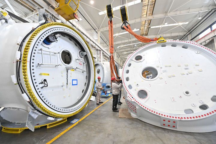 2025年9月24日,工人在位于山西转型综合改革示范区的太重集团新能源产业园区吊运风电装备。新华社记者 杨晨光 摄 报告呼吁,面对全球生态危机挑战,没有任何一个国家能够独善其身,各国应携手共进,把清洁美丽可持续世界的美好愿景变成留给子孙后代的真实日常。那时,中国故事与人类故事将在同一片蓝天下交汇成一首永续发展的长歌,响彻星辰大海,点亮人类征途。
