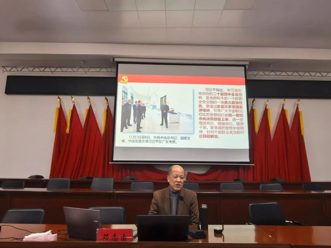 本网讯 11月27日下午,学习贯彻党的二十届四中全会精神市委宣讲团报告会在拿口镇举行。市委宣讲团成员、市委党校高级讲师邓志由应邀作专题宣讲。拿口镇党政班子成员、机关干部等50余人参加学习。