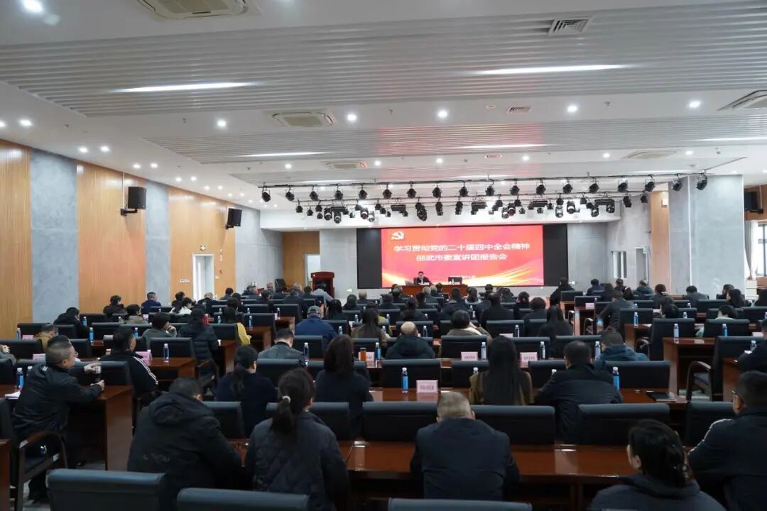 本网讯 12月5日,学习贯彻党的二十届四中全会精神市委宣讲团报告会在卫健系统举行。市委宣讲团成员、市卫健局党委书记、局长兼总医院党委书记朱平作专题宣讲报告。市卫健局领导班子,市直各医疗卫生单位班子成员,各乡镇卫生院院长,社区卫生服务中心主任、书记、第一书记,卫健局机关股室负责人,总医院二层干部共130人参加学习。