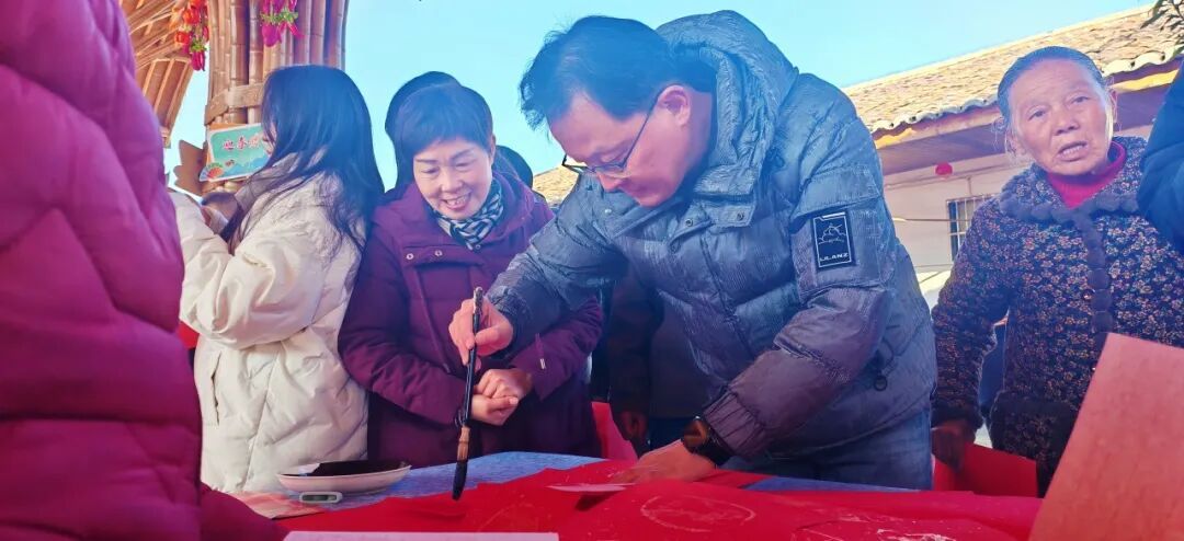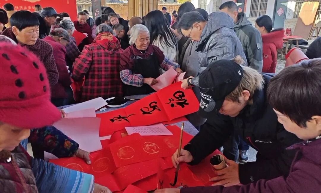 活动现场,连史纸、傩舞、和平游浆豆腐制作技艺等多项本土非遗集中亮相,各体验展位前人头攒动,非遗魅力扑面而来。枫林窑制作技艺展位上,传承人现场手把手指导拉坯,转盘转动间,形态各异的器物雏形渐次成型,引得众人驻足围观,不少小朋友跃跃欲试,亲身感受传统陶艺的乐趣。和平游浆豆腐制作技艺展位前,群众排着队体验手工磨豆,亲手转动石磨将黄豆磨成细腻豆浆,在劳作中品味地道乡土风味。现场还设置了碎铜茶、蜂蜜品尝区,让大家直观感受本土特色物产的独特风味。 非遗体验之外,写春联、免费发图书专区同样人气高涨。多位书法家挥毫泼墨,一副副饱含新春祝福的春联很快完成,被群众争相领取;工作人员同步发放各类文化典籍与科普读物,墨香与书香交织,为活动增添了浓厚文化底蕴。