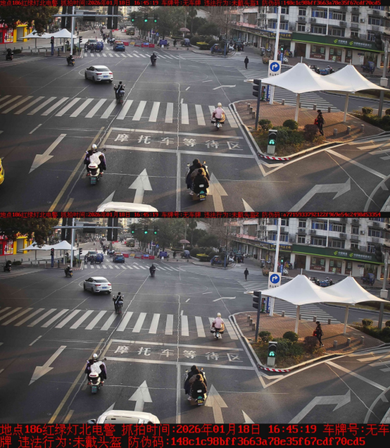 违法行为:驾驶非机动车逆向行驶 时间:1月19日 地点:邵武市 四、驾驶机动车未戴头盔