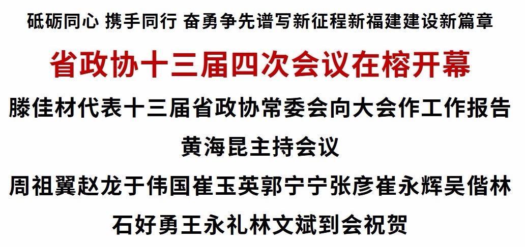 凝心聚力促发展,同心筑梦绘蓝图。1月26日上午,省政协十三届四次会议在福州开幕。