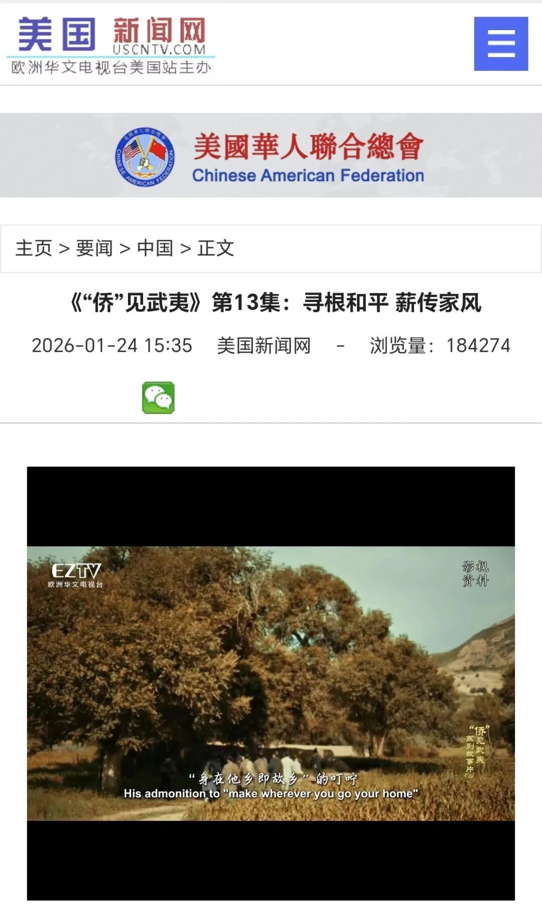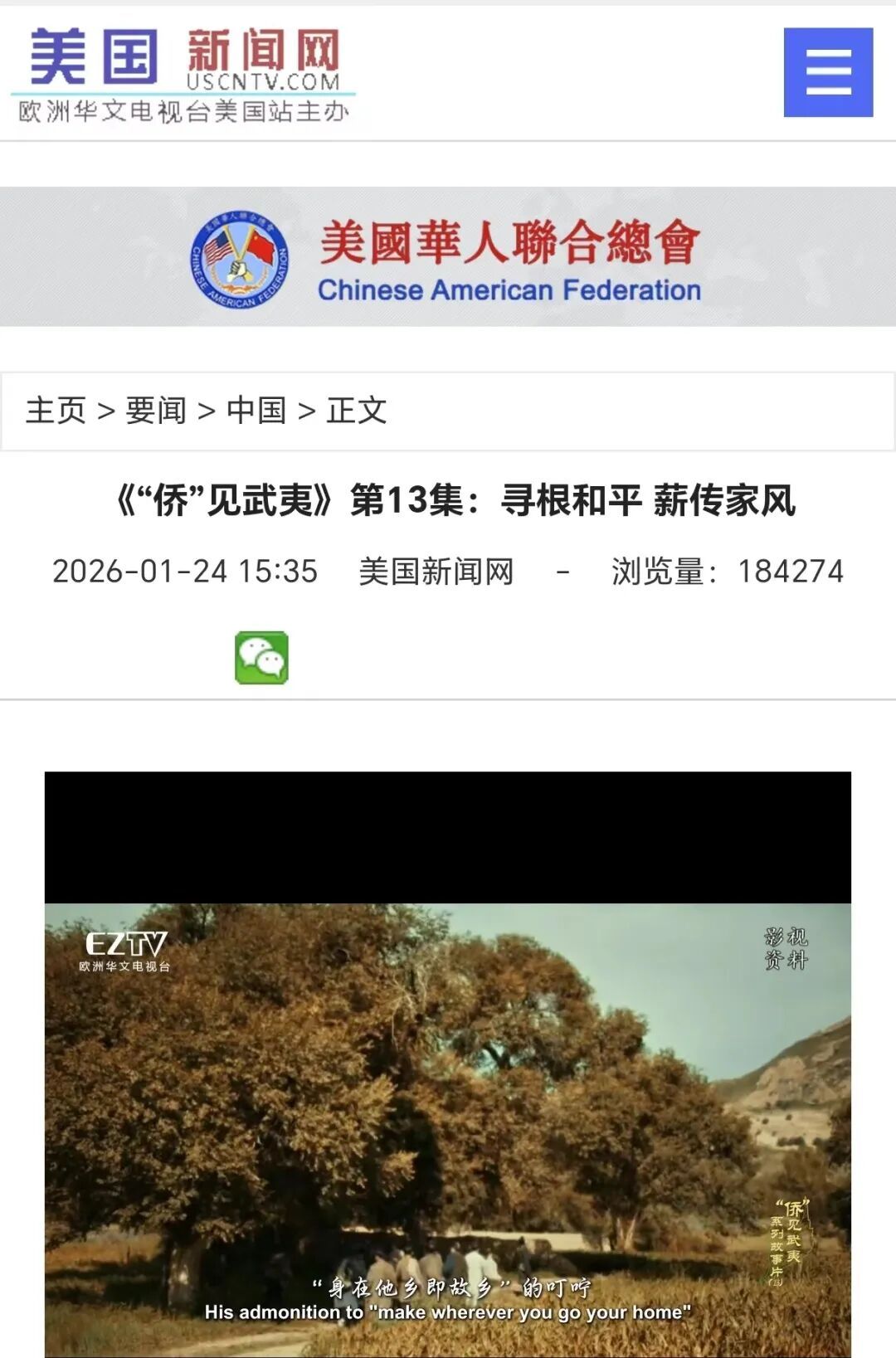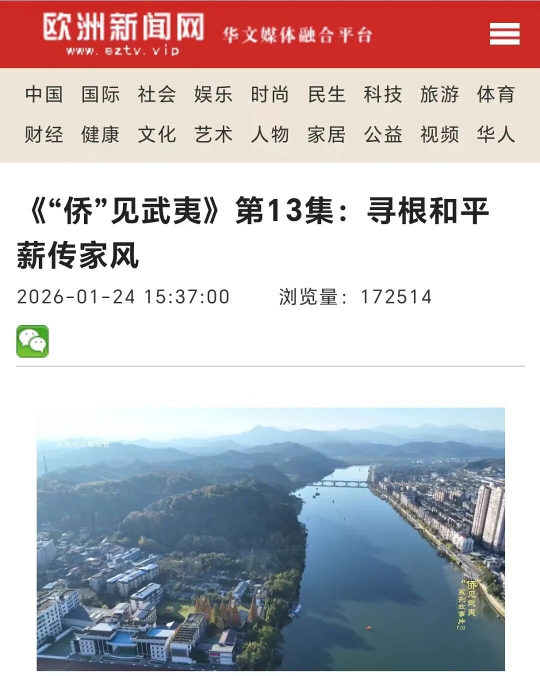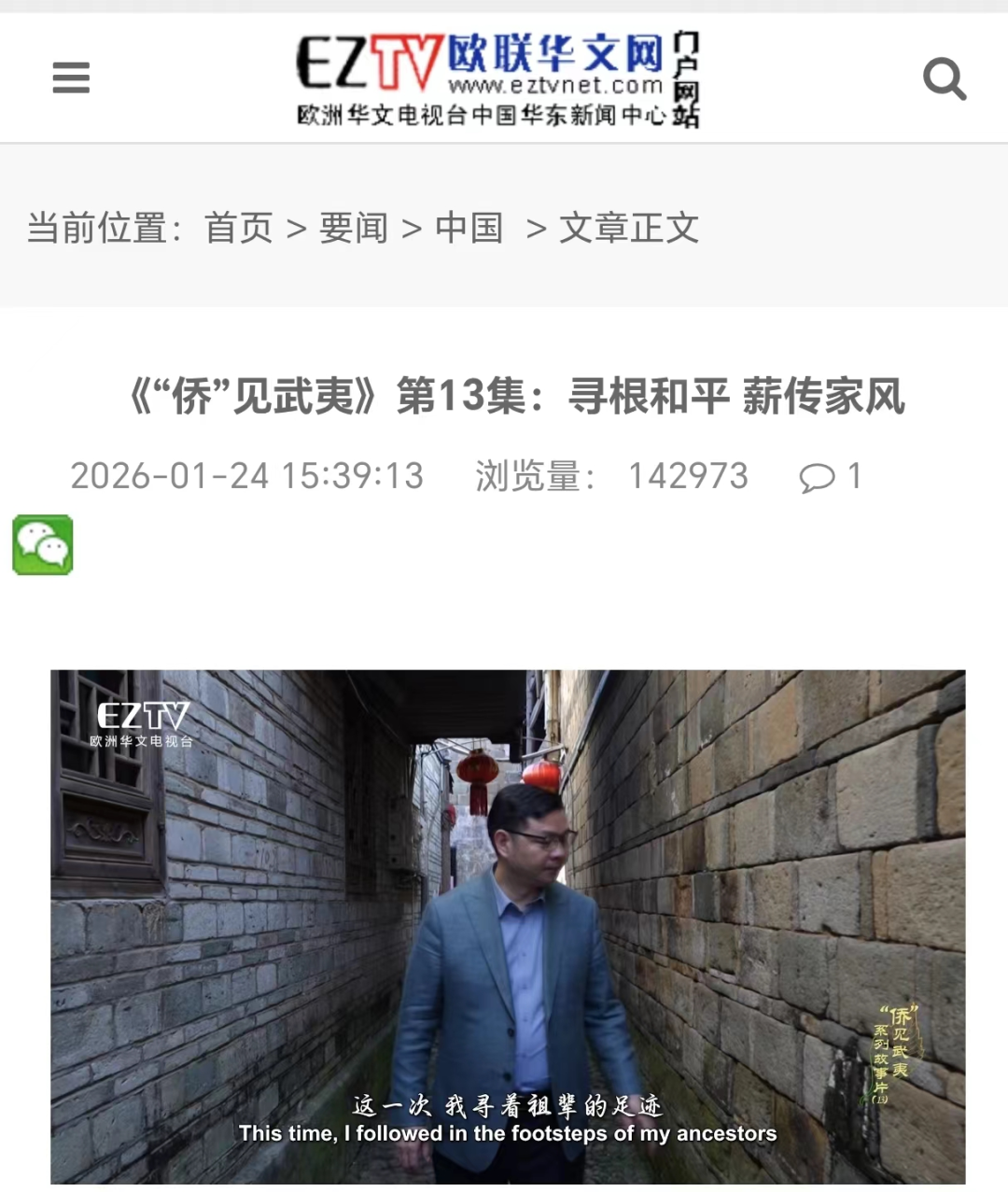 本网讯 由邵武市融媒体中心创作的短视频《“侨”见武夷》第13集——“寻根和平、薪传家风”经南平市侨联审核推荐,近日在欧洲华文电视台第一频道播出,节目同步上线点播至“一台三网”,即欧洲华文电视台官网、欧洲新闻网、美国新闻网、欧联华文网。上线48小时,“三网”总浏览量即超过50万。节目将滚动播出3个月,预计收视覆盖人群逾15亿。 该视频以邵武黄峭后裔归乡侨胞的寻根之旅为脉络,串联和平古镇与黄峭文化精髓,既展现峭公祠、和平书院、峭山樟等历史遗存的厚重,也呈现古镇烟火与时代新貌的鲜活。通过侨胞的所见所闻、所感所悟,凸显黄峭“兴学、遣子、传家风”的精神内核,诠释了祖地对海外游子的强大凝聚力,传递出文脉传承、宗亲同心、故里振兴的美好愿景,兼具情感温度与文化厚度。节目播出后在当地引发热烈反响,好评如潮,也实现了邵武市融媒体中心独立创作节目在海外电视台播出零的突破。