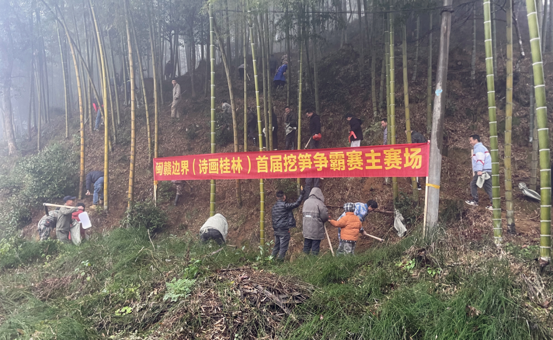 “在大大的竹林里面挖呀挖呀挖,挖大大的冬笋,回大大的‘家’……” 2月7日,一场别开生面的“闽赣边界(诗画桂林)首届挖笋争霸赛暨回家过年吃笋宴”活动在邵武市桂林乡金桂党群服务中心圆满举办。活动以“笋”为媒、以“年”为景,吸引了桂林乡、金坑乡及江西黎川县等闽赣边界村民、各地游客和线上网友共5000余人参与,共同沉浸于一场农耕竞技与浓浓乡情的迎春盛会。