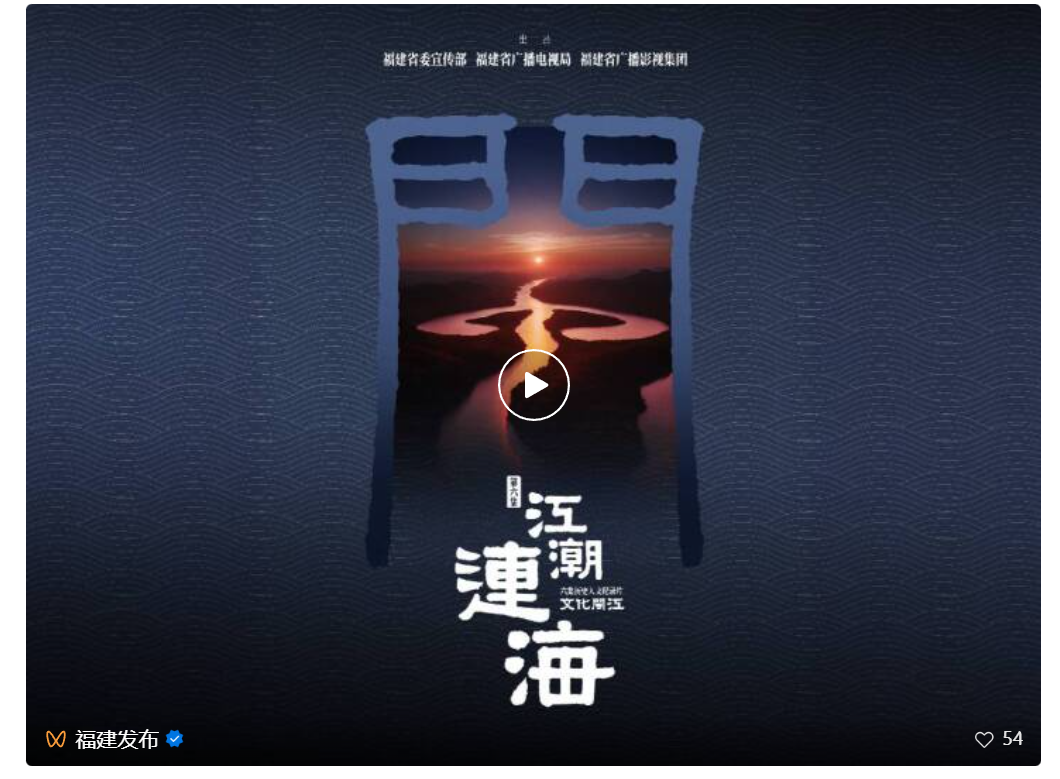 播出平台及时间 东南卫视 2月18日-2月23日17:50 海峡卫视 2月18日-2月23日20:25 综合频道 2月18日-2月23日21:04 Bilibili海博TV同步推出 作为“福建文脉”工程第一季作品,纪录片由福建省委宣传部策划指导、省广播电视局支持、省广播影视集团历时近两年精心打磨,以母亲河闽江为叙事主轴,贯通自然地理、历史变迁与当代风采,全景呈现闽江流域的文化根脉、人文价值与时代气象。 点击查看《文化闽江》纪录片 完整内容↑ 来源:海博TV |