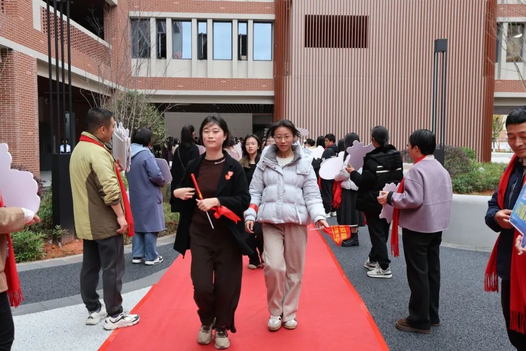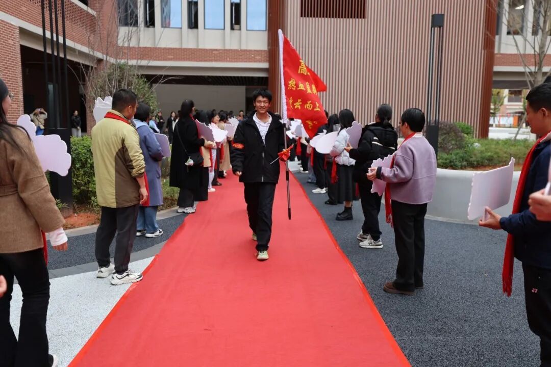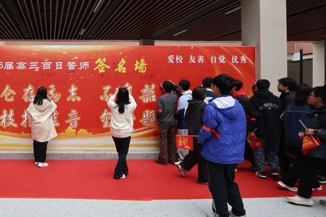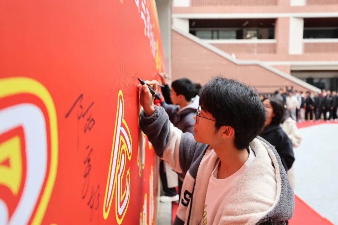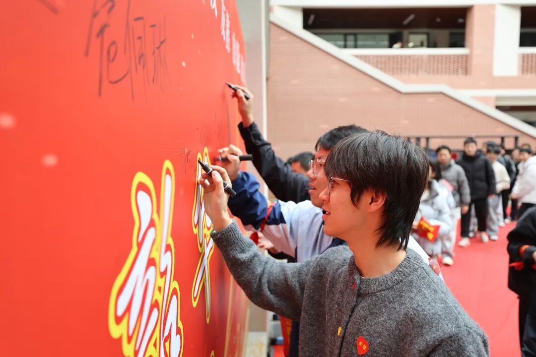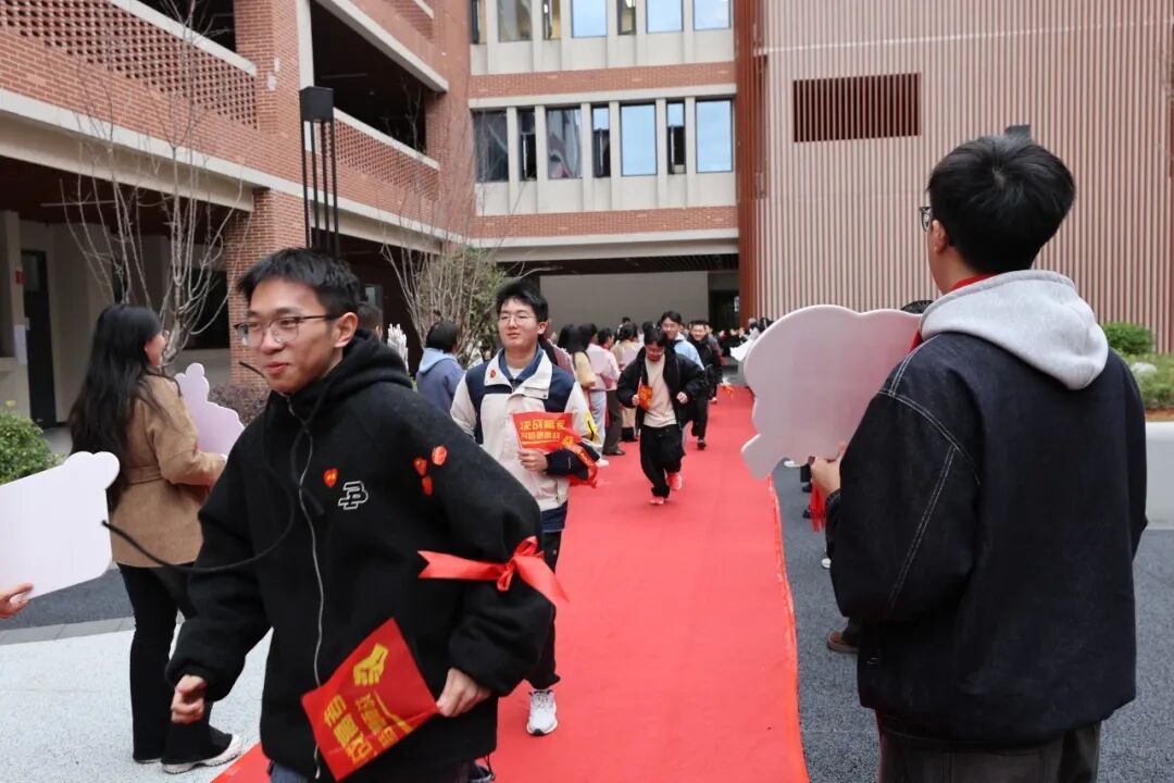 红毯写愿 师生共踏状元红毯,在“梦想墙”上写下誓言。