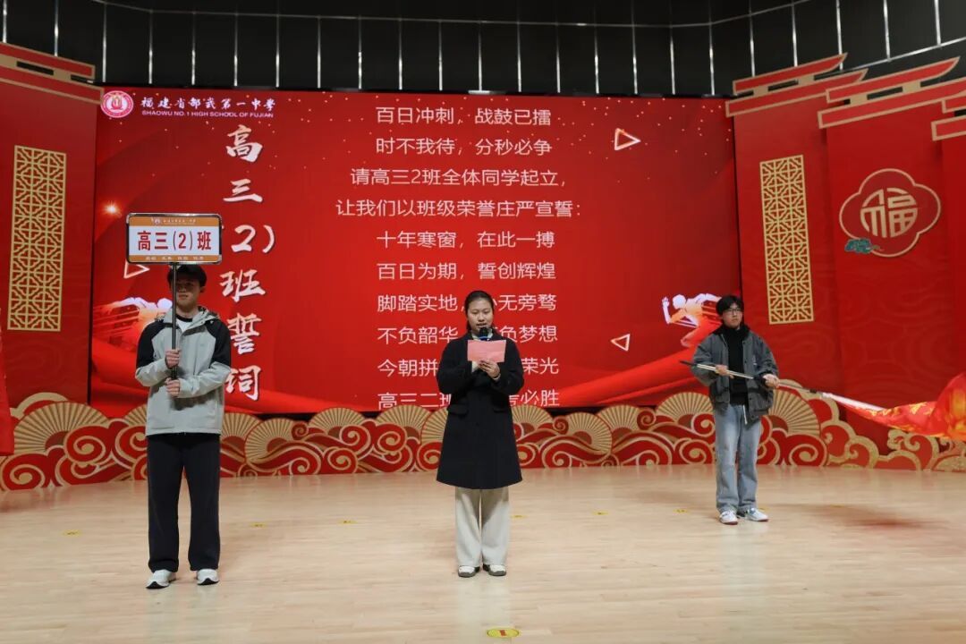 本网讯 春光正好,奋楫当时。2月27日下午,邵武一中2026届高三百日誓师大会举行,校领导、高三师生及家长代表齐聚一堂,吹响高考冲刺号角。