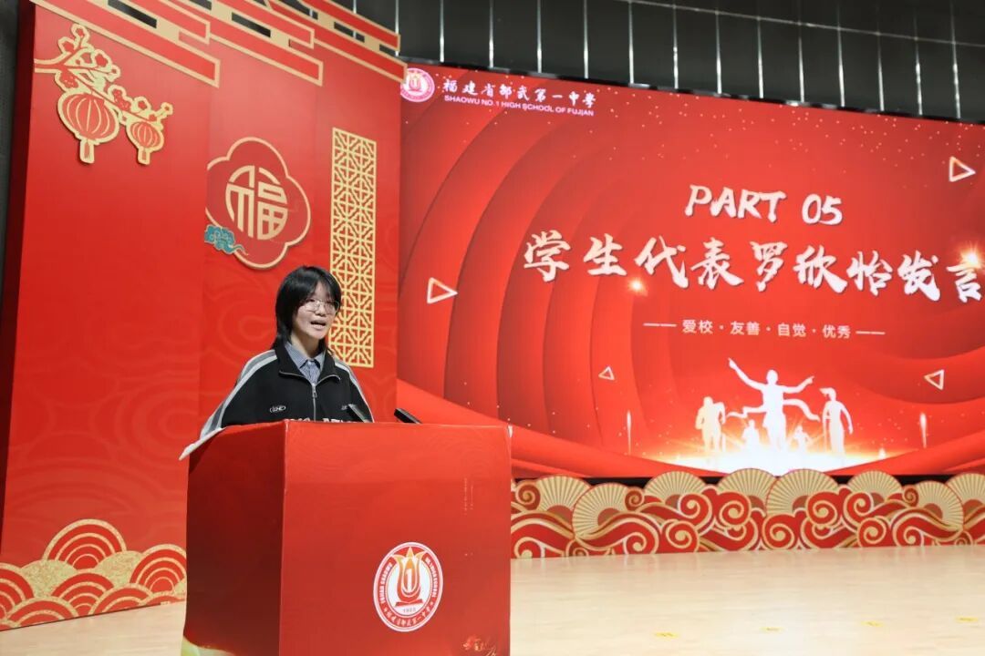 学生代表发言 学生代表罗欣怡同学以《在生命的转弯处》为题,用永不停息的水流比喻笔耕不辍的学子,坦言备考焦虑,与同窗共勉:抵达终点之前,仍需砥砺前行。