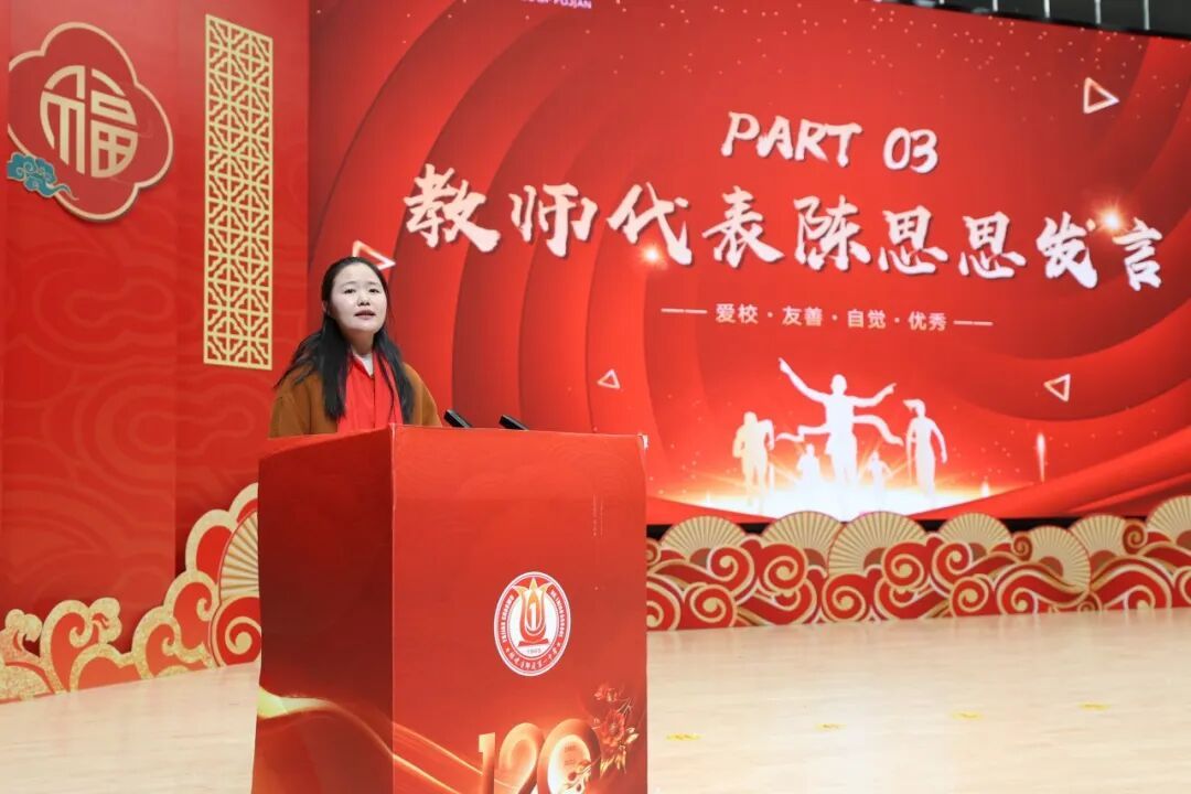 教师代表发言 教师代表陈思思以春晚机器人的迭代发展,比喻学子成长,勉励大家建立长远学习秩序,承诺全程相伴。