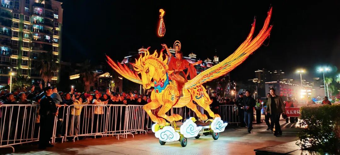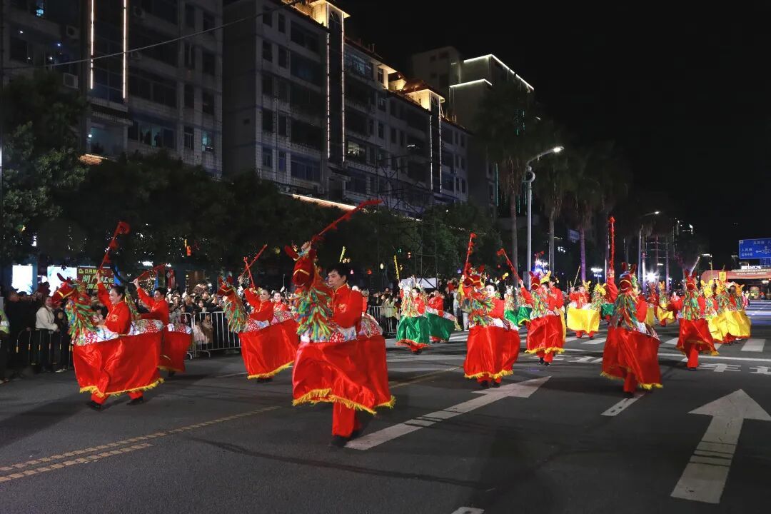 夜幕降临,华灯初上。19时30分,“福马当先·福启新程·福耀邵武”全域沉浸式巡游正式启动。随着空中飞马起飞领航,由29个方阵、800余名演员组成的巡游队伍浩浩荡荡出发,沿着熙春中路向人民广场行进,现场瞬间成为一片欢乐的海洋。