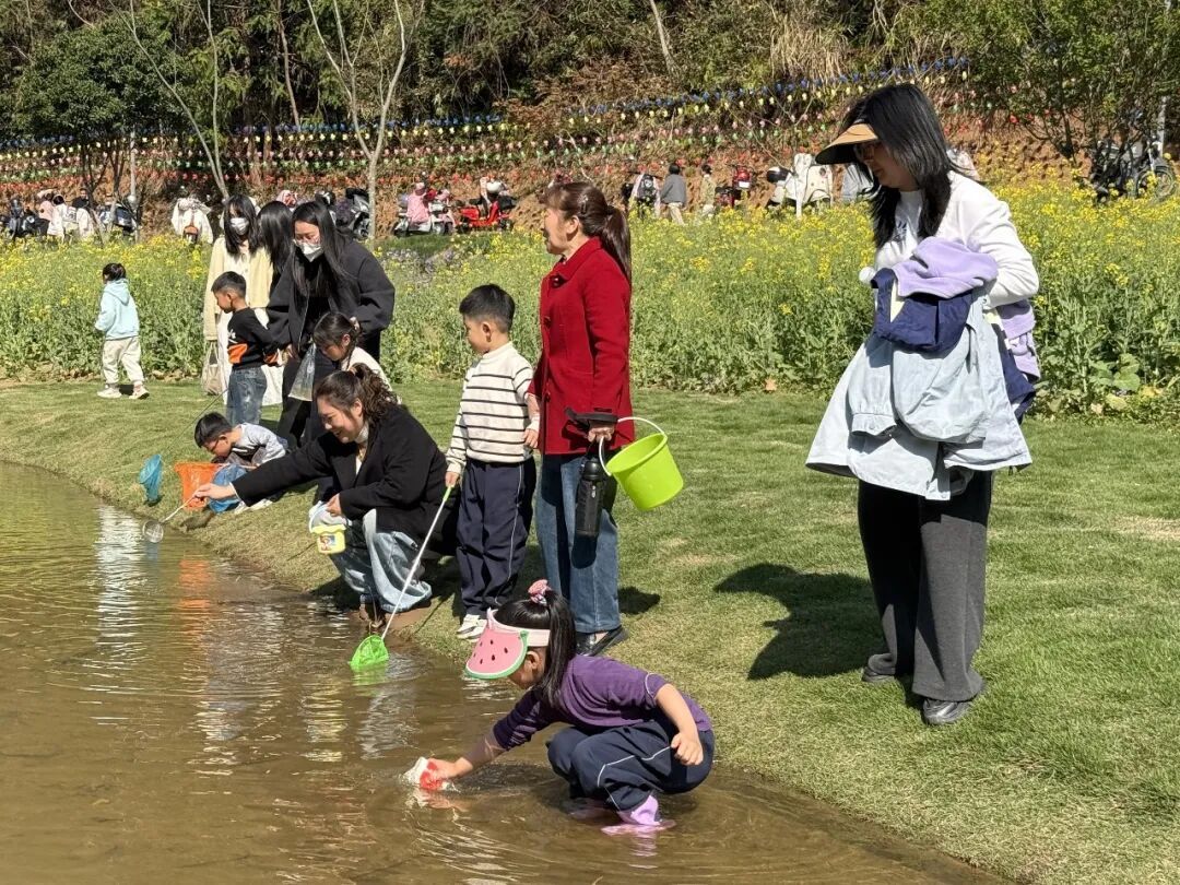 公园里草木葱茏、繁花次第,处处欢声笑语。孩子们或漫步缤纷花海,感受花瓣的柔软与春日的芬芳;或支起画板,拿起水彩笔,将眼中的春色画在纸上;或在开阔的草甸上肆意奔跑、追逐嬉笑;或来到清澈的溪水旁,有的静待鱼儿咬钩的惊喜,有的挽起裤脚摸鱼玩水,尽享自然之乐……野餐垫上摆满了各色美食,孩子们与家长、小伙伴边分享着美味,边听老师讲述春天的故事。 “最近气温回升,阳光明媚,特别适合春游。”家长凌燕笑着说,“周末我们也会带着小朋友自驾到周边的乡村,露营野餐,感受春日,孩子特别喜欢这样的时光。”说起春日的游玩经历,小朋友黄梓言更有感触,眼睛亮晶晶的:“福山公园、严羽公园的花开得特别漂亮,粉的、白的、紫的,像小花园一样,路边还有很多好吃的,爸爸妈妈帮我拍了好多好看的照片,我们全家还一起放风筝,风筝飞得高高的,特别开心!”