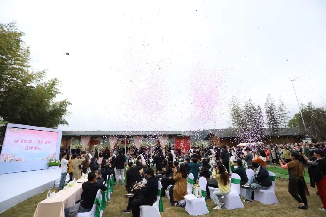 开园现场暖意融融、亮点纷呈,一系列特色活动轮番上演,让游客沉浸式感受卫闽的浪漫与烟火。一场浪漫的集体婚礼率先登场,几对新人在木绣球花海的映衬下,携手许下爱的誓言,以花为媒、以景为证,定格幸福瞬间,也赋予了“绣爱谷”浪漫的情感内核。“在这么美的花海中举办集体婚礼,既温馨又有意义,不仅感受到了卫闽的春日之美,更体会到了这里的浪漫氛围。”参与集体婚礼的新人李先生笑着说道。同时,现场举行摄影基地合作签约仪式,来自江西、厦门、武夷山和邵武本地4家优质婚纱摄影公司与卫闽镇签约合作,依托绣爱谷浪漫花海、外石古树林、铁道兵营农旅园等特色景观资源,共建摄影基地,推动“文旅+”产业深度融合发展。