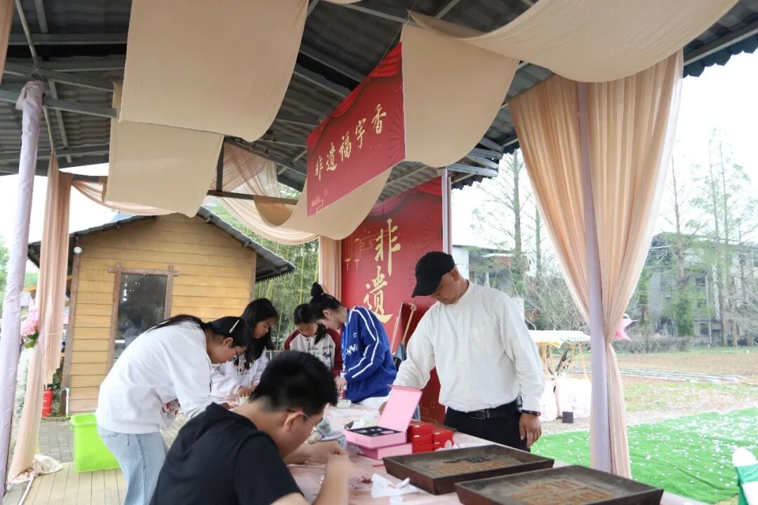 非遗福字香体验区前更是排起了长队,成为游客打卡的热门点位。作为邵武市级非物质文化遗产,卫闽福字香以山茶籽壳粉为原料,经“一笔成福”的传统技法制作而成,不添加任何黏合剂,香气沉静温和,祈求风调雨顺、五谷丰登、老少安康幸福,承载着当地百姓对美好生活的期盼。现场,非遗传承人手把手指导游客制作福字香,从平整香灰、填充香粉到引燃香品,每一个步骤都充满仪式感。