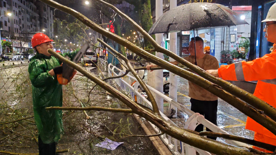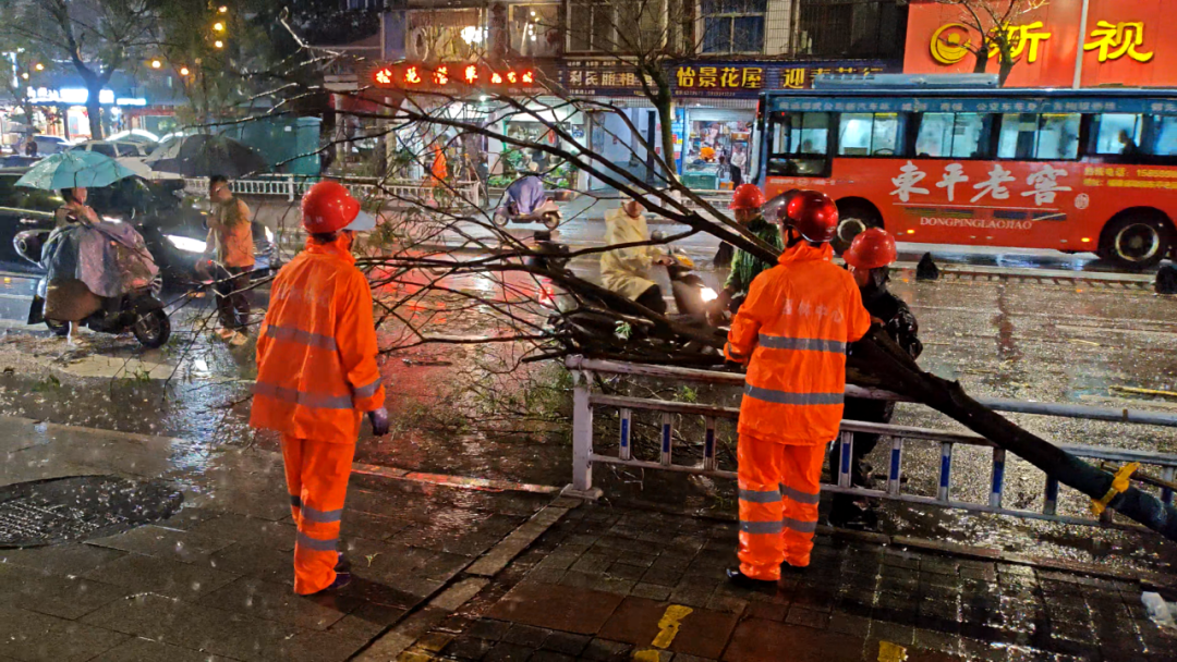 本网讯 受低层切变和西南暖湿气流共同影响,4月10日晚,邵武市突遭强对流天气袭击,短时强降水、雷暴大风等极端天气导致不少街区树木被吹倒、部分路段出现积水,给城市运行和市民生活带来严峻考验。