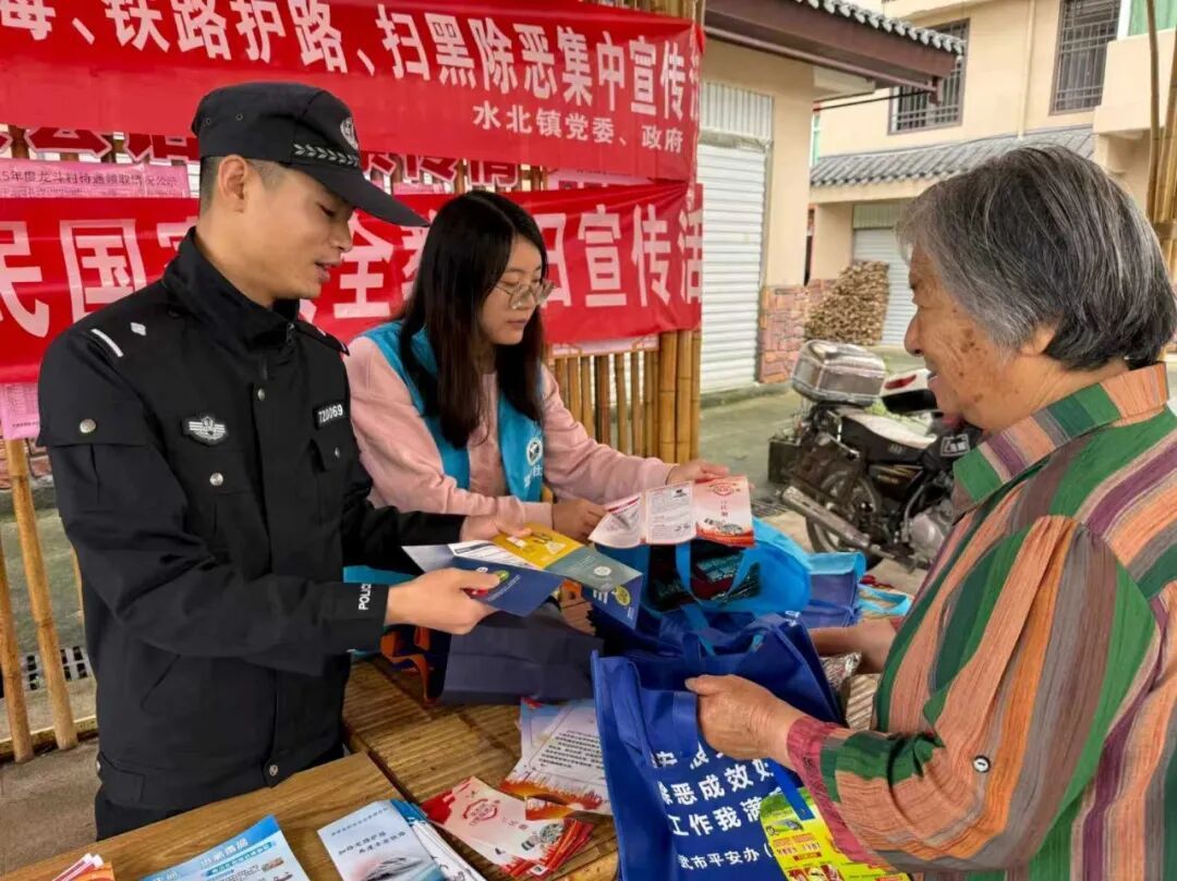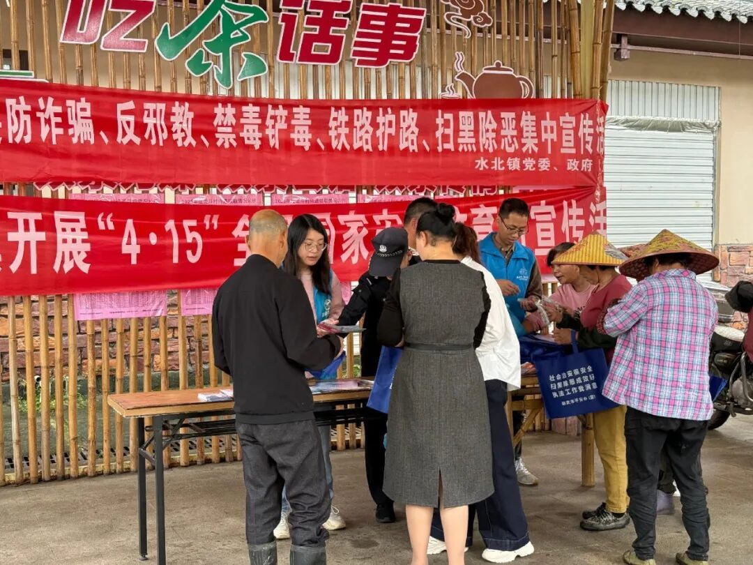 本网讯 安而不忘危,存而不忘亡。在第11个“4·15”全民国家安全教育日来临之际,水北镇平安办联合司法所、派出所等部门,紧扣“统筹发展和安全,护航‘十五五’新征程”主题,依托龙斗村“吃茶话事”阵地优势,集中开展国家安全宣传活动,让国家安全知识走进群众、浸润人心,筑牢乡村安全防线。