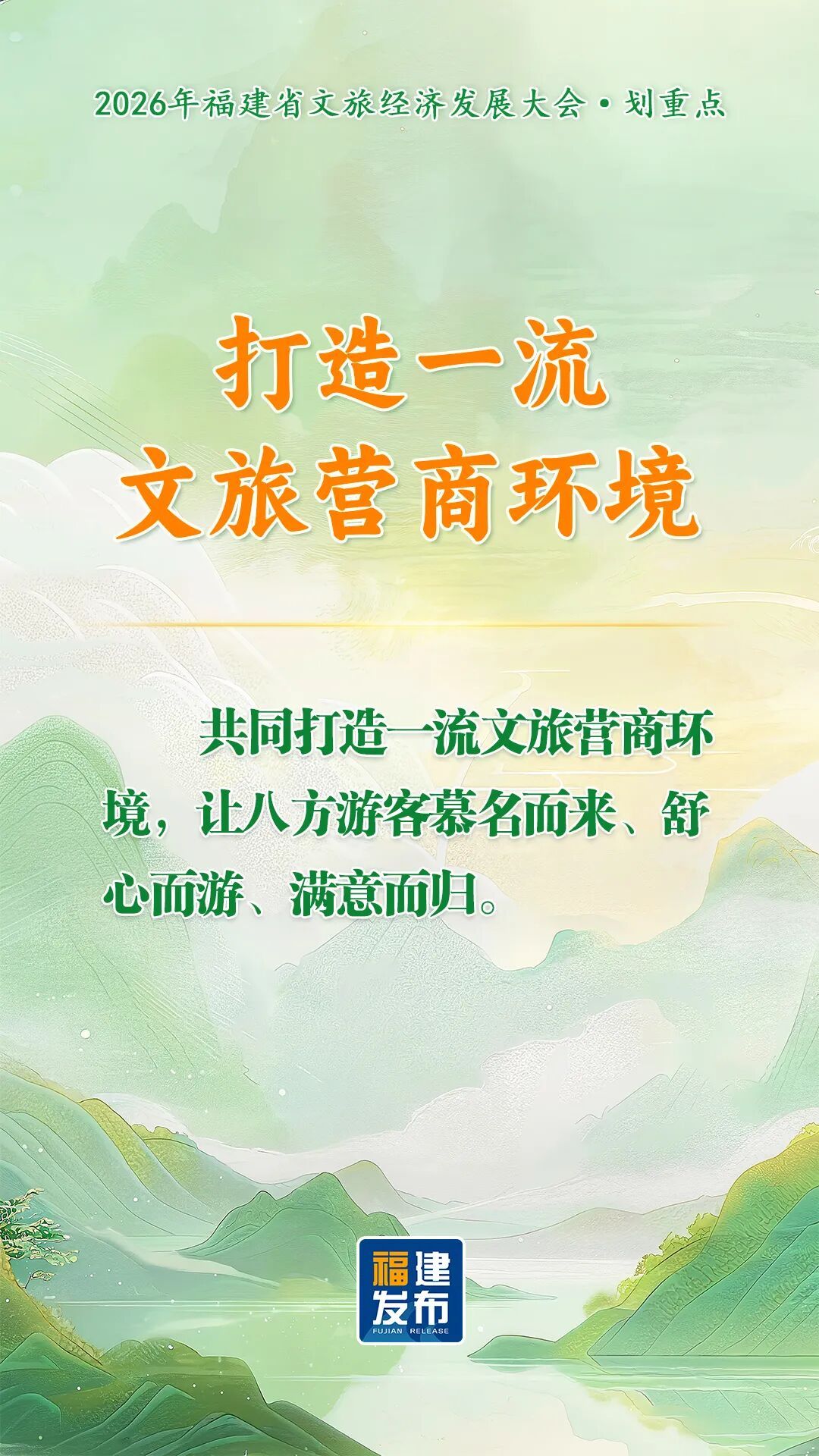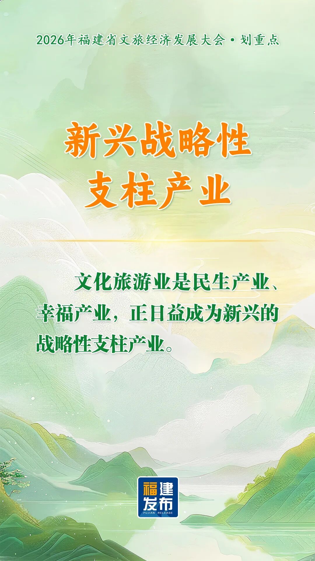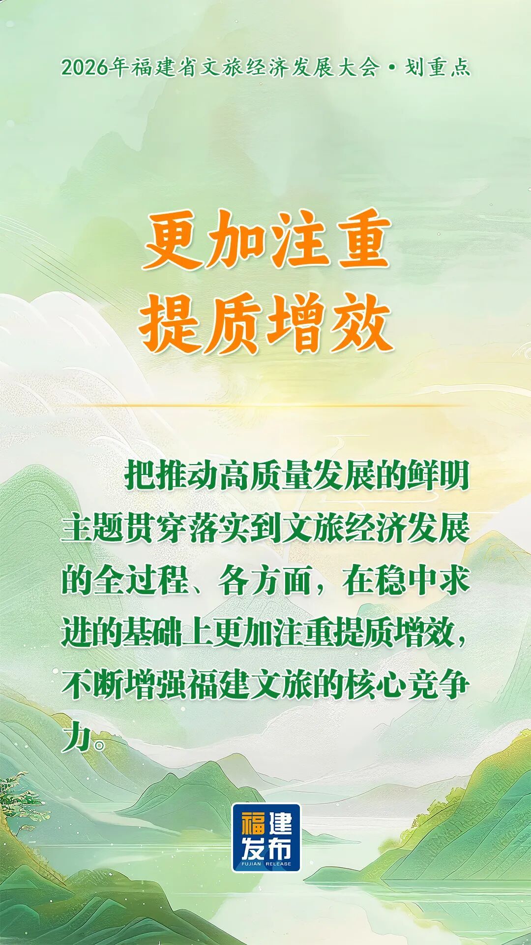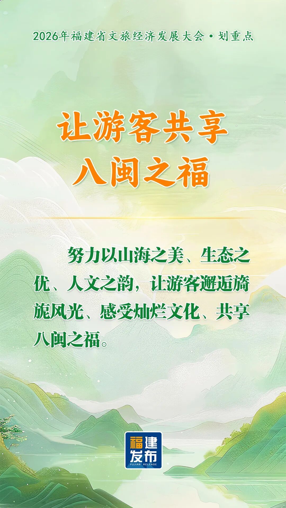 4月18日,2026年福建省文旅经济发展大会在漳州召开。省委书记、省人大常委会主任周祖翼出席并讲话,强调要全面落实习近平总书记关于文化和旅游工作的重要论述和在福建考察时的重要讲话精神,聚焦打造世界知名旅游目的地发展目标、把文化旅游业培育成为支柱产业重要要求、推进文化和旅游深度融合发展实践路径,坚持守正创新、提质增效、融合发展,着力完善现代旅游业体系,在提升文化影响力、展示福建新形象上久久为功,为全省在中国式现代化建设中奋勇争先提供坚实的文旅支撑。省委副书记、省长赵龙主持大会。 让我们通过一组海报 速览大会要点 ↓↓↓
